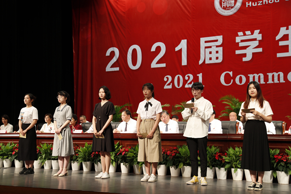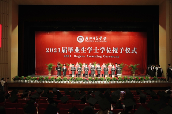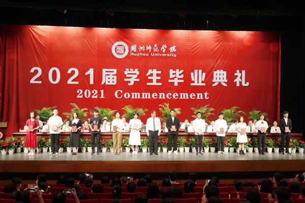 舒志定宣读了2021届毕业生名单,校党政领导班子为毕业生代表颁发了毕业证书。