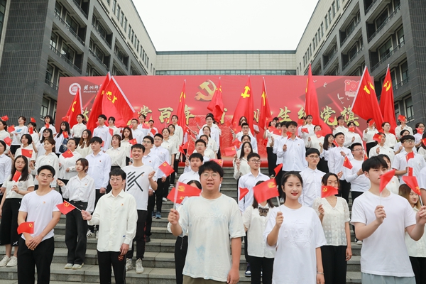 最后,仪式在全场师生合唱《没有共产党就没有新中国》的歌声中圆满结束。