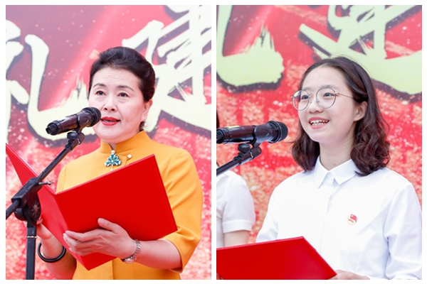 学生代表任家慧表示,在绣制党旗的过程中,她切身感受到了一股向上、奋进的强大的力量。一根根金绣线将同学们的心串在了一起。一针一线绣出的不仅仅是党旗,更是传承共产主义的共鸣与决心。