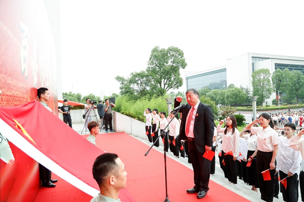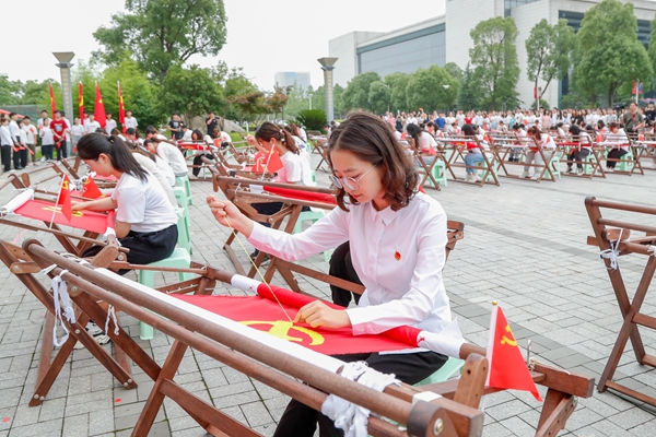 6月17日上午,学校在校训广场上举行了“湖师学子心向党 百名师生绣党旗”收针仪式。校党委书记金佩华,校党委副书记陈永华、丁敢真,党委委员、组织部长何小青,党委委员、宣传部长杜宁,湖州市退役军人事务局党组成员赵正栋出席仪式。研工部、教务处、团委负责人,二级学院党委书记、副书记以及2000余名师生代表参加了仪式。仪式由陈永华主持。