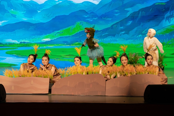 《溇港的一颗种子》主要讲述了主人公稻香香来到溇港,和当地的小动物们——湖羊爷爷、白鹭姐姐、毛脚蟹、扬子鳄妹妹、田鼠赛赛等,齐心协力与赤链蛇作斗争,利用湖州“桑基文化”的智慧,共同打造适合水稻生长环境的故事。该剧以儿童视角打开湖州故事,引导小朋友们体验不同的人物情感,促进其情感认知的成熟,配合着绚丽多姿的舞蹈编排、璀璨夺目的灯光秀以及演员们深情投入的演绎,为现场观众们呈现了一场精彩绝伦的视听盛宴。