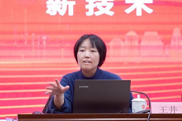 王井从从新技术、新舆论、新宣传三个方面,向大家展示了电子信息战略性产业、先进制造技术、平台服务技术以及绿色环保技术等产业的发展现状和未来前景,结合近几年发生的媒体舆论案例,运用了大量时下流行的话术,幽默风趣、生动形象地阐述了新时代背景下宣传和舆情对工作、生活的影响。她还介绍了当下新媒体赛道的分布情况,以及各平台的倾向性和传播特征,分析了当前网络传播的最新趋势,包括互联网、万物互联以及人工智能在传播中的应用,让大家深刻感受到了新技术革命对舆论生态带来的影响与变化。