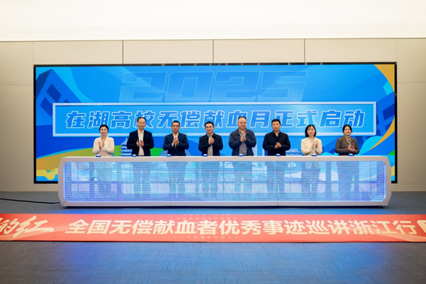 “浙”里行,最“闪耀”。11月4日,“闪耀的红——全国无偿献血者优秀事迹巡讲浙江行(湖州站)”暨2025年在湖高校无偿献血月启动仪式在我校双创中心七楼会议厅举行。中国输血协会监事长吕杭军、献血动员专业委员会主任委员丁文艺,我校党委副书记丁敢真,湖州市社科院院长孙弘勋,湖州市新闻传媒中心党委委员、副主任吴继任,湖州市教育局党委副书记、副局长黄桂众,湖州市卫生健康委党委副书记、副主任胡小军,湖州市团委副书记谢作灵,湖州市红十字会副会长蔡惠琴出席。中国输血协会巡讲团成员,全市献血工作联席会议成员单位、各区县卫健局和乡镇街道相关负责人,在湖高校教师、志愿者和学生代表等200余人参加。